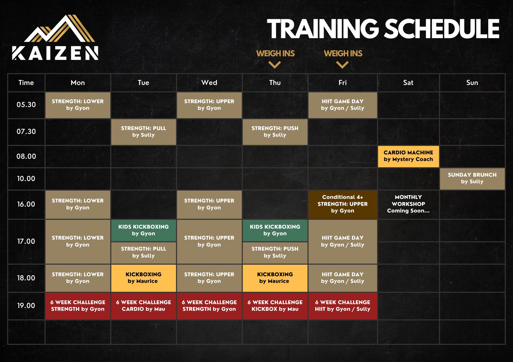All classes are coached. Drop-in sessions available for active members. Contact us to confirm availability or book a spot.